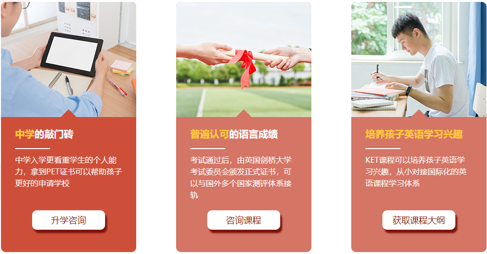 环球ket剑桥英培训班,KET和PET是剑桥通用英语考试中的前两级考试。在小 升初考试中,KET、PET证书被称为进入重点学校的“敲门砖”,另外这项考试也比较放心,证 书用途广泛,是学习者英语能力的有力证明。